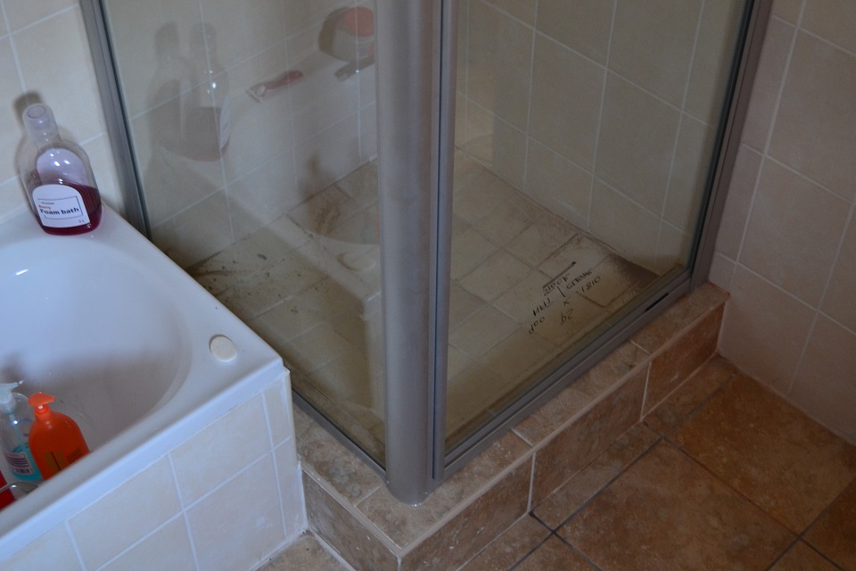 Tiled floors and lots of build in cupboards.